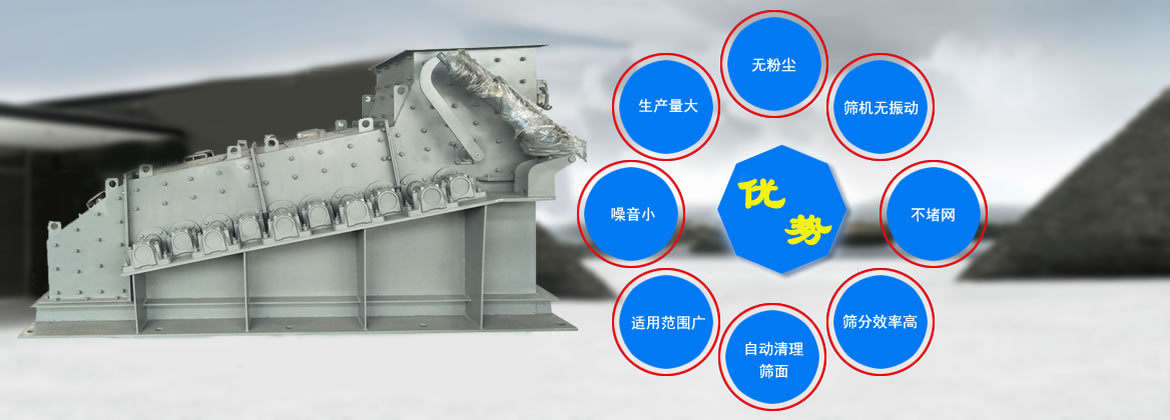 ●机器低速平稳运转,无任何振动及冲击载荷,避免振动筛分设备的疲劳损伤问题。